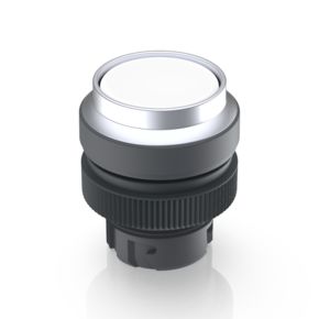 RAFIX 22 QR, Leuchtdrucktaster, Frontring vorstehend, Bund rund, tastend, Frontring silbermetallic, Blende weiß