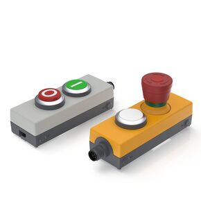 The E-Box M12 is a ready-to-connect, completely equipped housing including actuator and switching elements. Thus, for example, emergency stop, on/off and up/down functions, also with additional status displays, can be implemented with the very compact dimensions of the E-Box.The assembly: Screw on the clip, put on the box, connect the plug, check and ready. The E-Box M12 can be used wherever individual command device units are required at decentralized locations. Typically, for example, for emergency stop applications along a production facility or at the safety fence. The dimensions of the E-Box M12 are based on the edge dimensions of a 40 mm profile rail and the mounting concept is also designed for this.