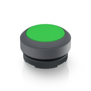 RAFIX 22 FS+, pulsante luminoso, calotta piatta, collare tondo, momentaneo, ghiera frontale grigio ardesia, Calotta verde