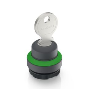 RAFIX 22 FS+, 钥匙开关,结构紧凑款,圆形卡圈, 前圈 绿色, 1 x 90°,L 形, 自复位功能, 拔出位置 0
