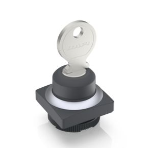 RAFIX 22 FS+, 钥匙开关,结构紧凑款,正方形卡圈, 前圈 银金属色, 1 x 90°,V 形, 自复位功能, 拔出位置 0
