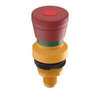 RAMO 22 E, M12,圆形卡圈, 可照明, 2 常闭 + 1 常开, 金, M12 8-极 A-编码, 复位 通过旋转, 蘑菇头 红色, 箭头 红色, 灯罩 红色, 可发光