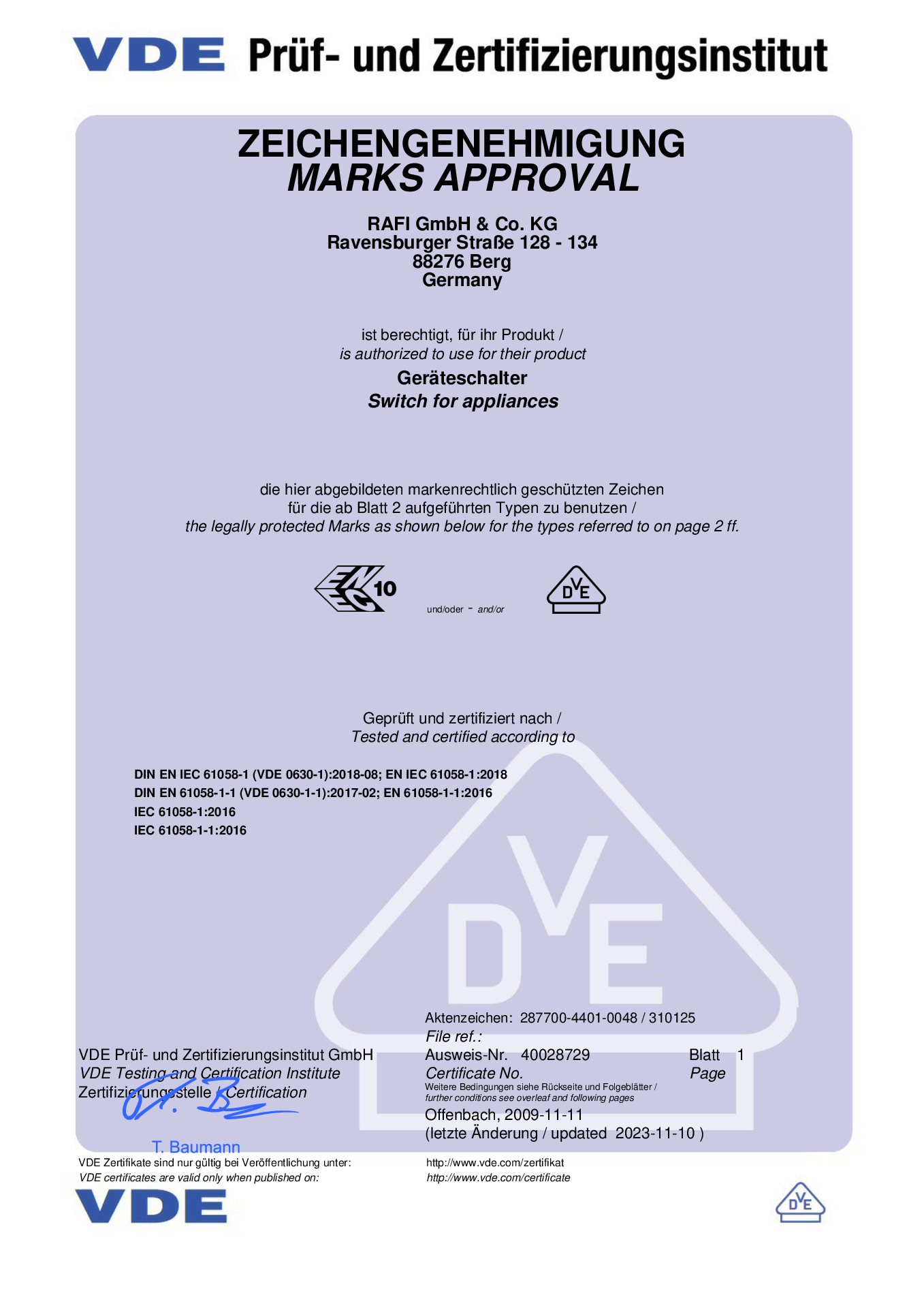 | 正面保护方式遵照DIN EN 60529 | IP40 |